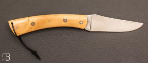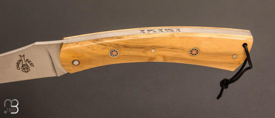 Couteau " Camembert " régional pliant en buis avec rivets mosaïque