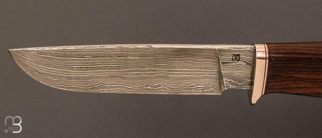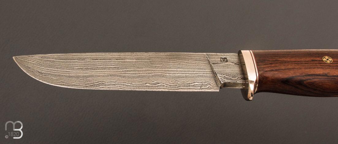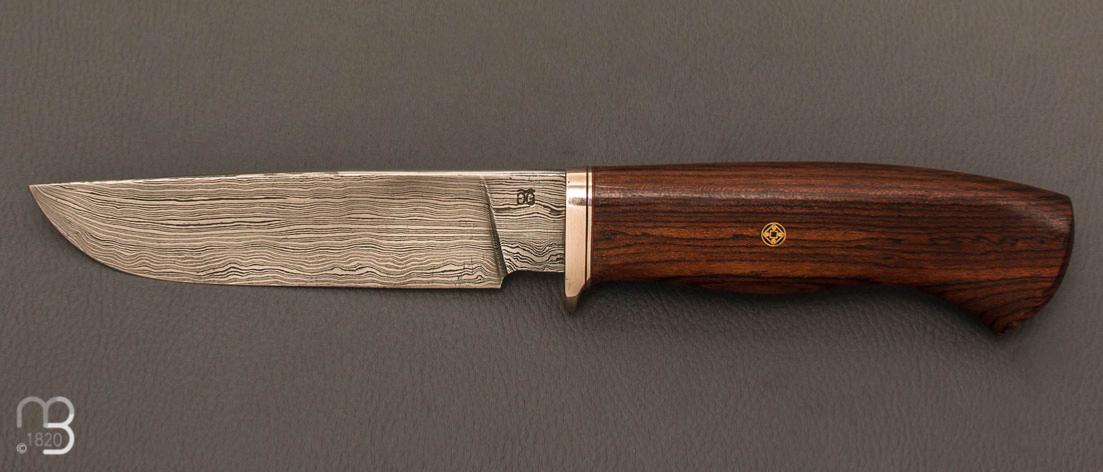 Couteau type "Chasse" avec manche en cocobolo et lame damas