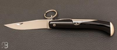 Plein manche en corne noire avec culot en ivoire de phacochère.