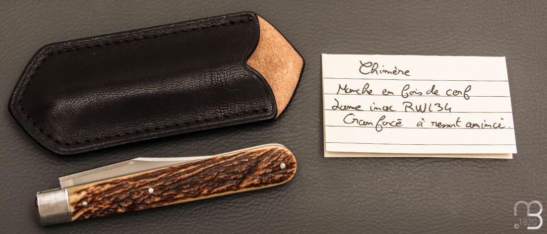 Couteau de collection modèle " Grande Chimère " par le coutelier Bastien Toubhans - Atelier Beau Merle.