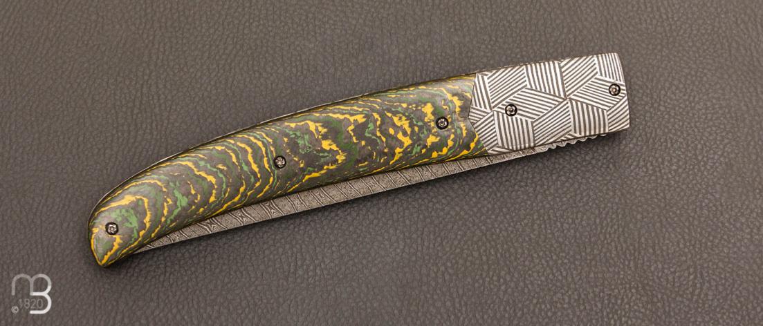 • Couteau " Corse XXL liner-lock " damas et Fatcarbon par Olivier Moretti