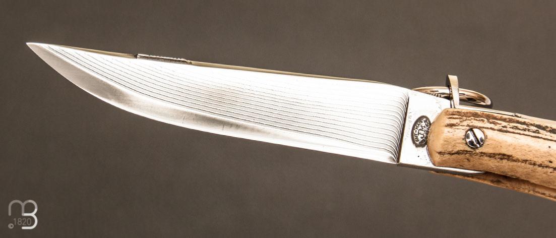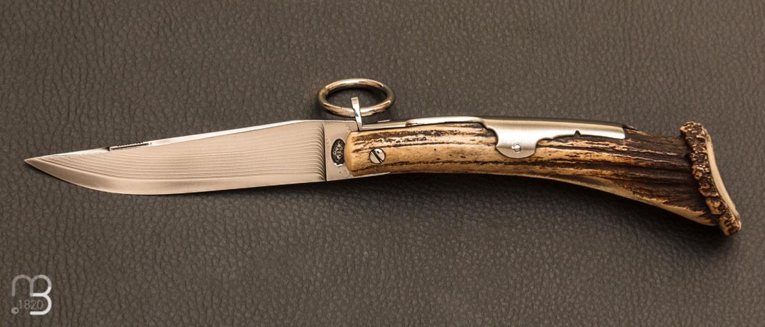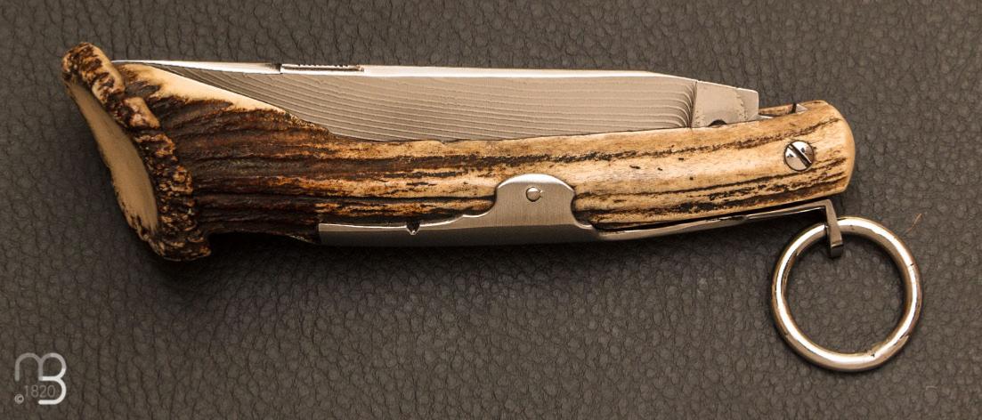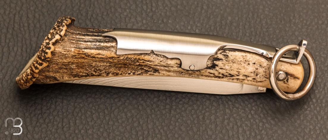 Couteau Couronne 12 cm Bois de cerf et lame damas SGPS par J. Mongin