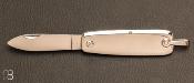 Blocage de lame par système de cran d'arrêt à anneau sur le ressort à palme.