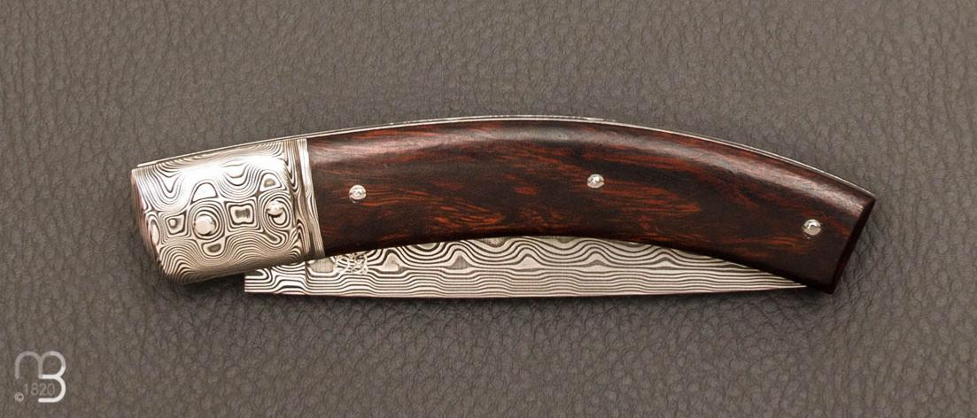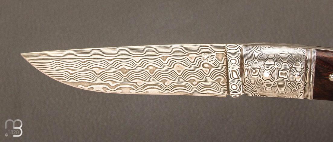 Couteau  "  Cran plat " custom damas et bois de fer d'Arizona par Claude Giraud