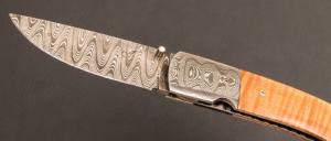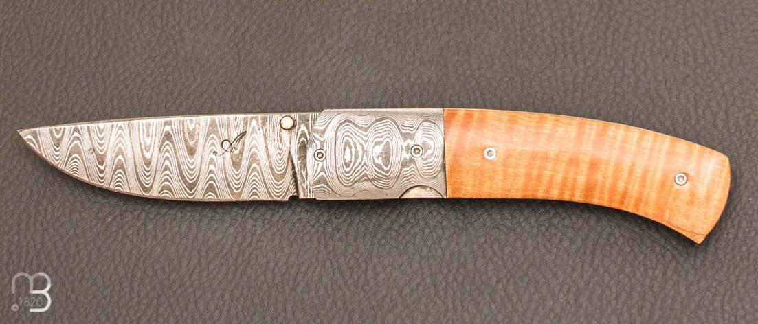 Couteau " custom " damas et frêne ondé par Christian Avakian