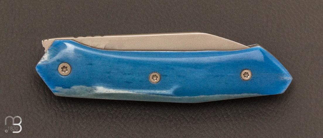 Couteau " custom " liner-lock os de chameau teinté par Christophe Lemaire - Coutellerie Tofbarteam