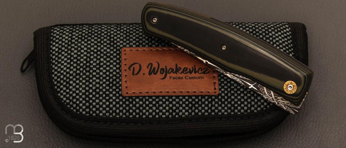 Couteau " custom " liner-lock par Diogo Wojakevicz - G-10 et lame damas mosaïque