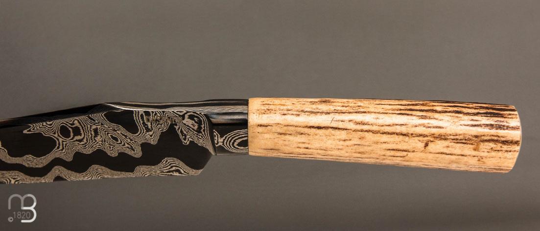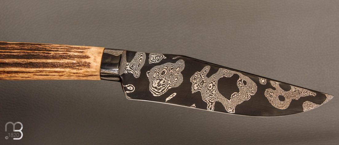 •  Couteau Semi intégral custom fixe de Israel Nascher  - Bois de cerf et damas