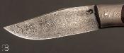 Couteau "Danny" Cran forcé damas et bois de fer par Mickaël Moing