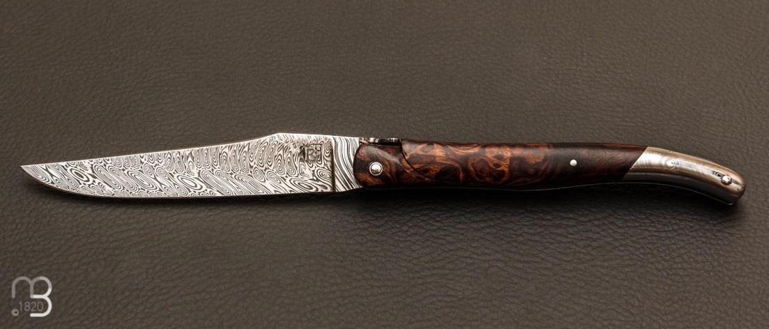 • Couteau de collection Laguiole 12 cm Loupe de bois de fer et damas par Rozelier Fabien- Ty Coutelier