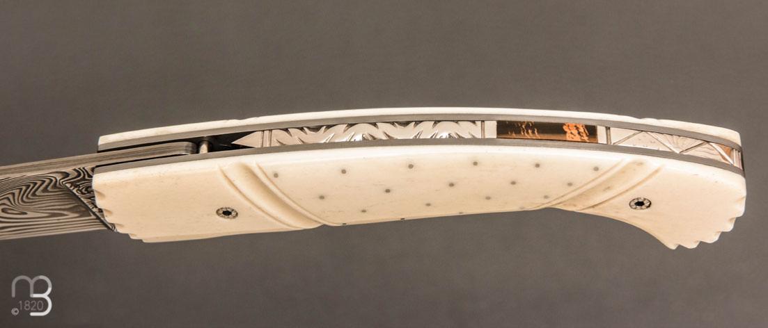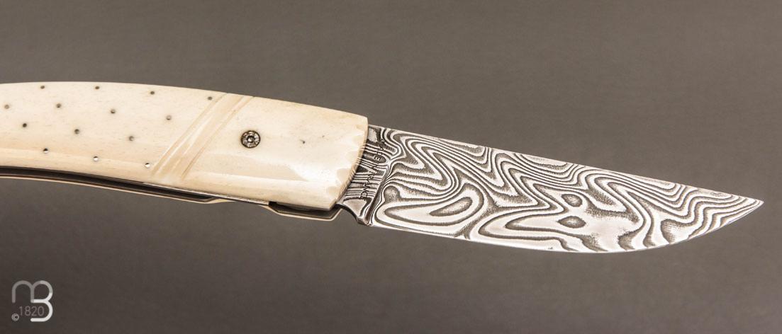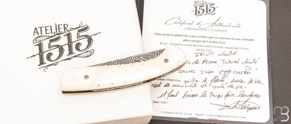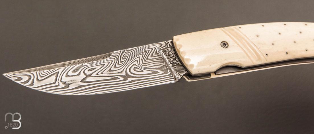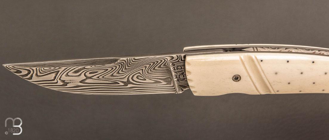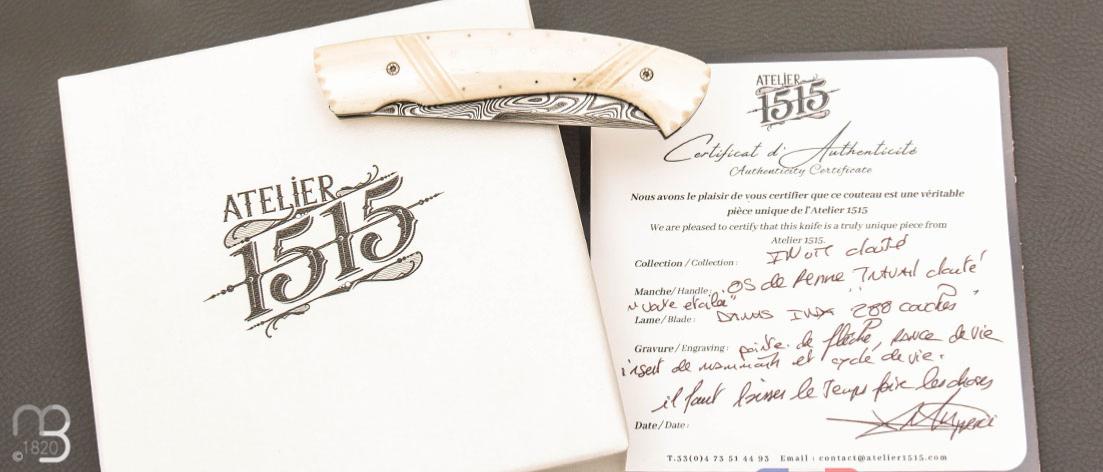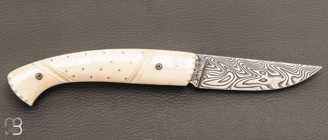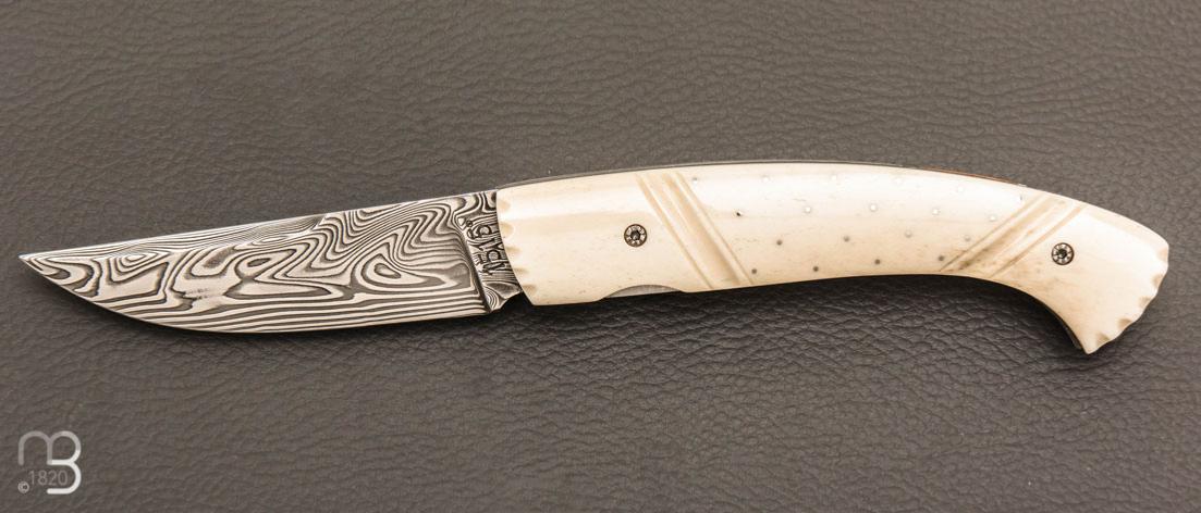 •   Couteau  " 1515 Inuit clouté " os de renne et Damasteel par Manu Laplace - Atelier 1515
