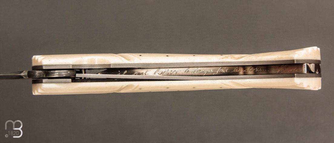 Couteau pliant 1515 de Manu Laplace livré avec un étui en cuir et le certificat d'authenticité.