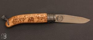 Couteau de poche Alpage Sauvage Hetre gravure Ours Kodiac