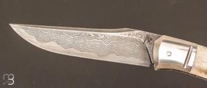 • Couteau de poche cran forcé par MG Coutellerie Marc George - Damas et Bois de Cerf