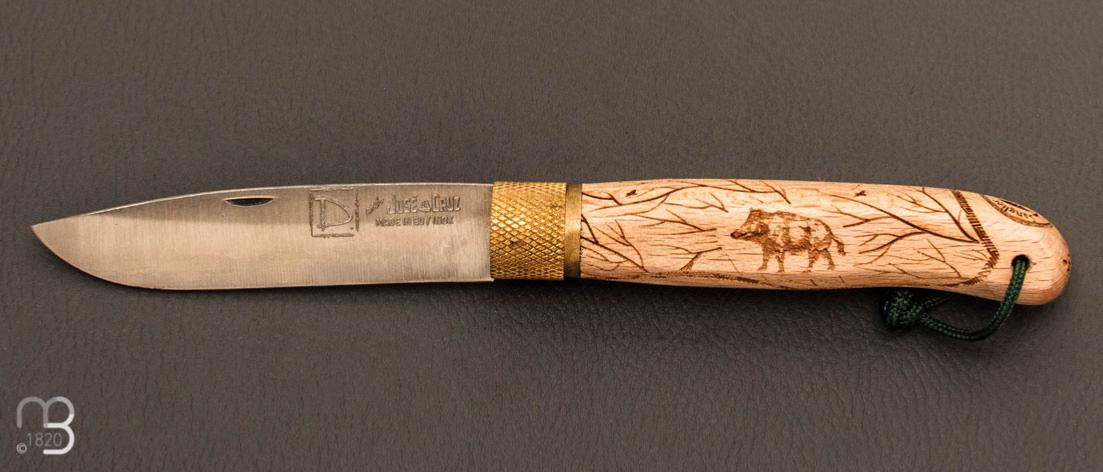 Couteau de poche José Da Cruz " Décalé collection " en bois de hêtre - Modèle "Sanglier"