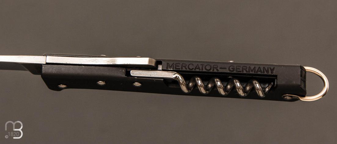 Ce couteau de poche allemand Mercator, fabriqué à Solingen, est une réédition d'un modèle vieux de plus de 60 ans. Ce modèle mythique a été ressuscité d'après les vieux schémas d'origine en papier jauni par le temps. Comme l'original, il est doté de 3 pièces: une lame verrouillable grâce à un cran d'arrêt à pompe, un poinçon permettant autant de défaire des des noeuds, que pour percer du cuir ou du tissu, un ouvre-boîte et un tire-bouchon.