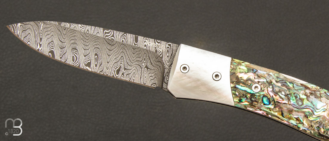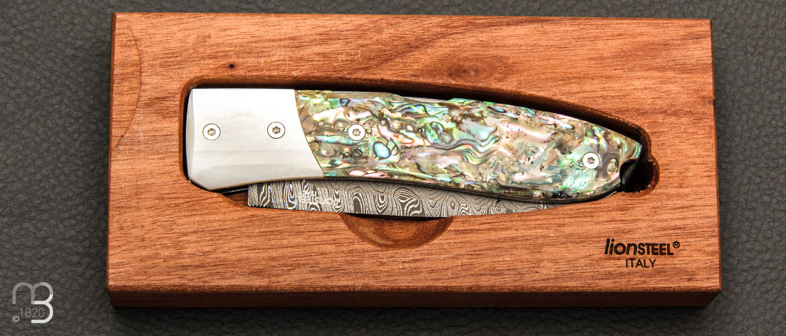 Couteau de poche Opera abalone et nacre lame damas par Lionsteel