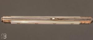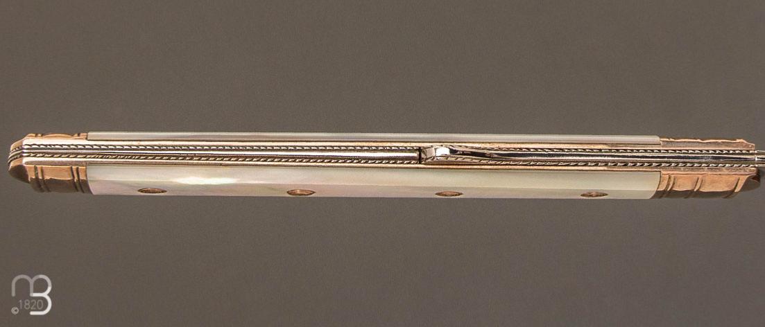 Couteau  "  Pompe centrale " custom par Jean-Pierre Suchéras - Nacre blanche et 14C27