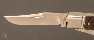 Installé en Ukraine, Aleksandr Vetrov fabrique des couteaux principalement au système "slipjoint', ses couteaux sont parfait et à présent reconnus dans le monde entier. Nous vous proposons ici un modèle à double lames, TRÈS RARE !!!