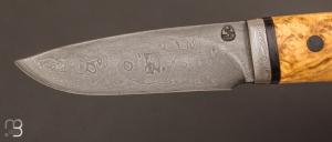 Couteau  "  droit  " artisanal à lame forgée en acier damas et loupe de buis par Jean Paul Sire