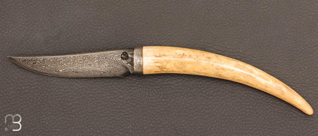 Couteau " Droit " bois de cerf et lame damas par Jean Paul SIRE
