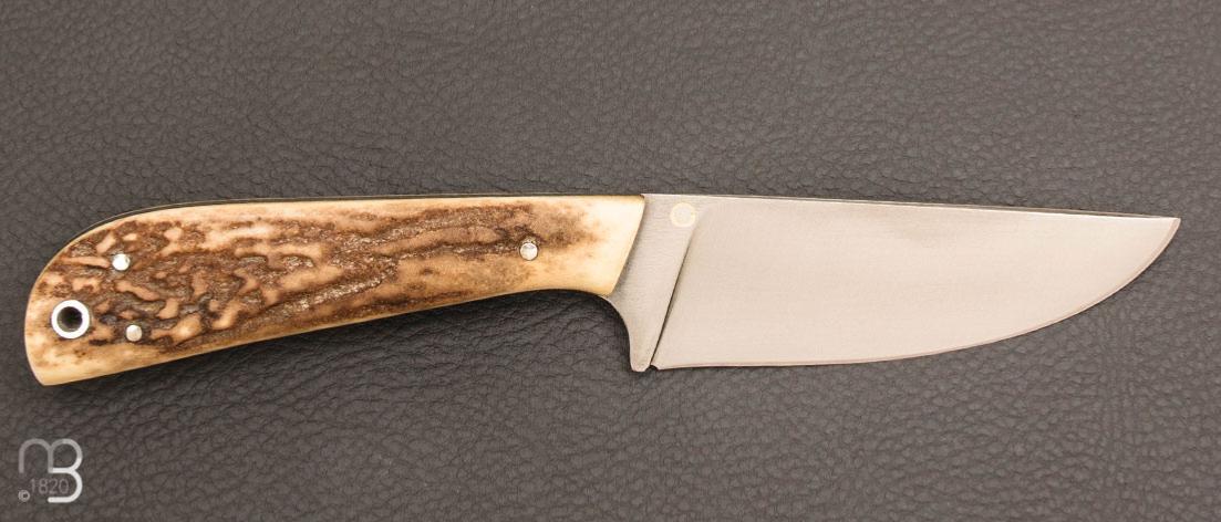 Couteau " droit custom " en bois de cerf et acier C130 par Christophe Million