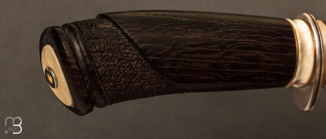 Manche en morta (chêne fossilisé) avec cabochon en ivoire de mammouth.
