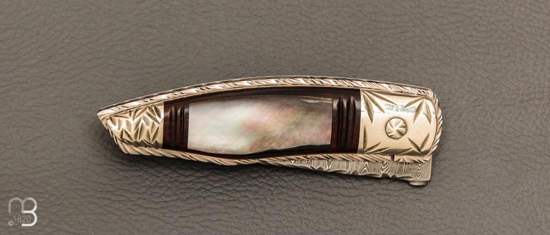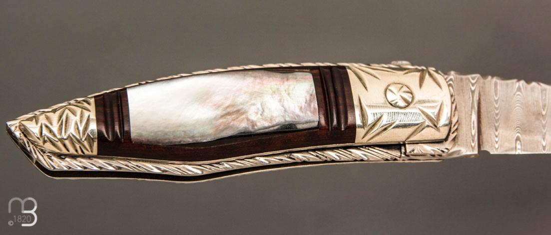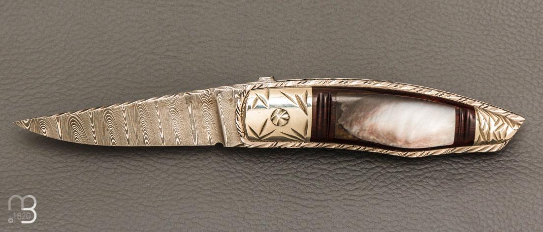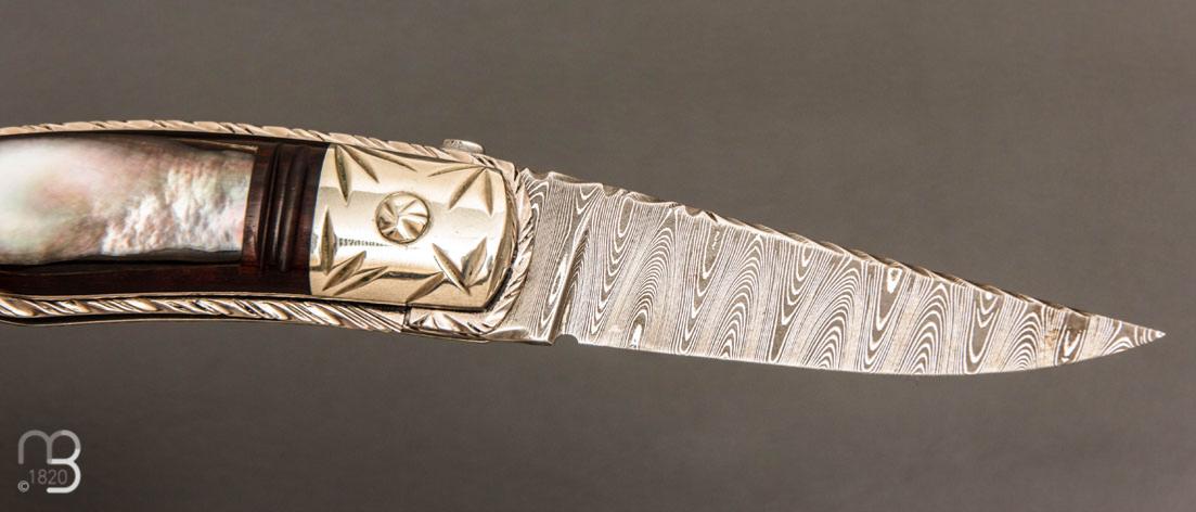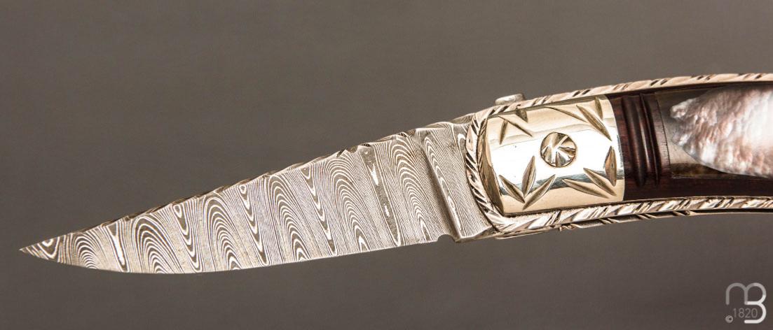 Couteau pliant par Joseph Uda - Nacre noire et damas