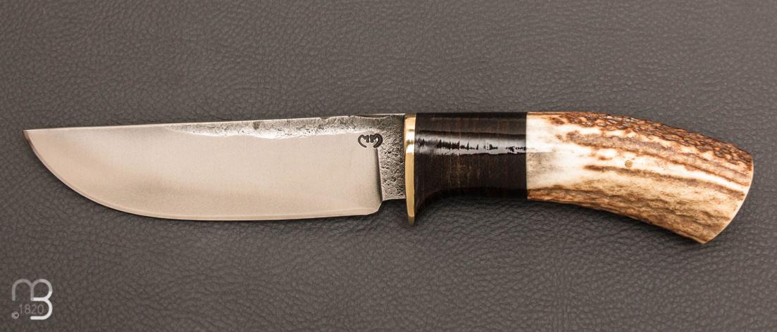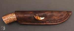 Couteau " droit " par Mickaël Moing - Rondelle de cuir / bois de cerf et lame forgée en acier 100C6