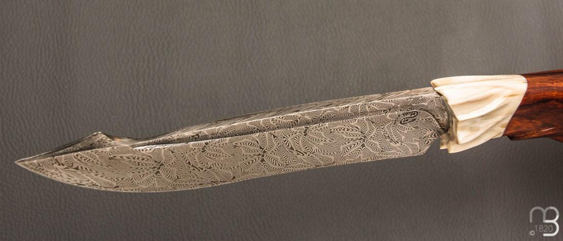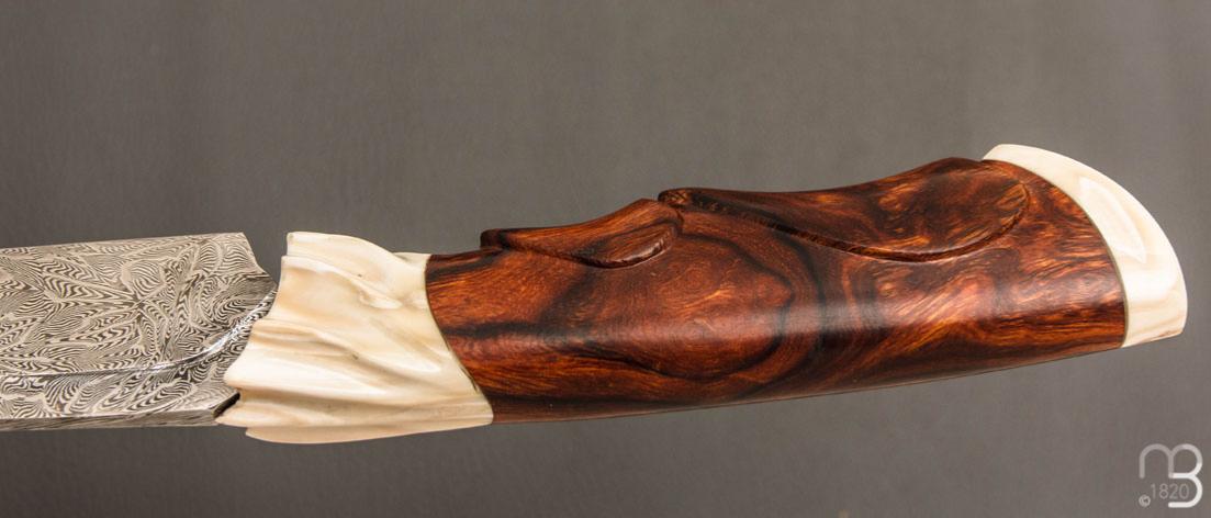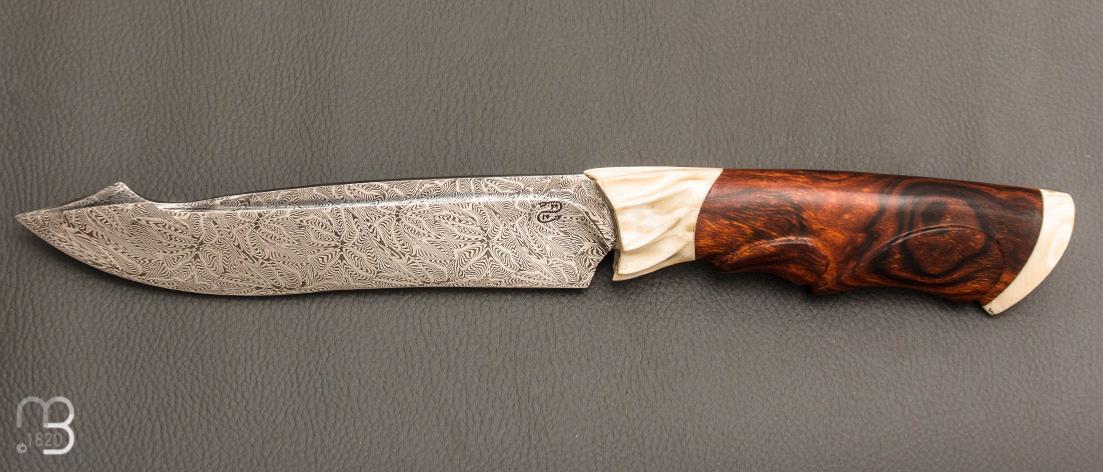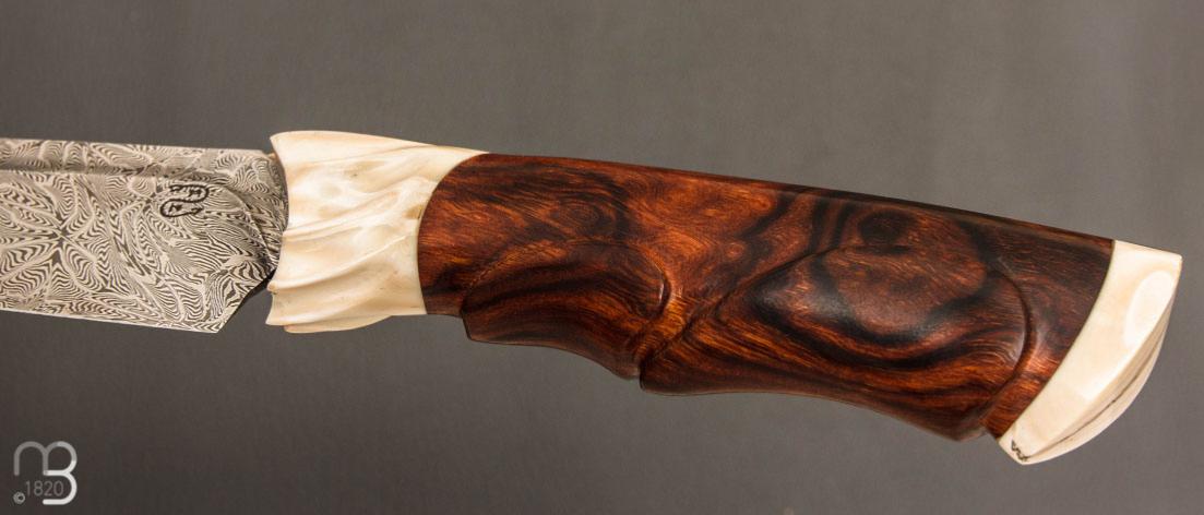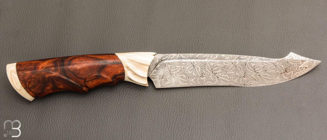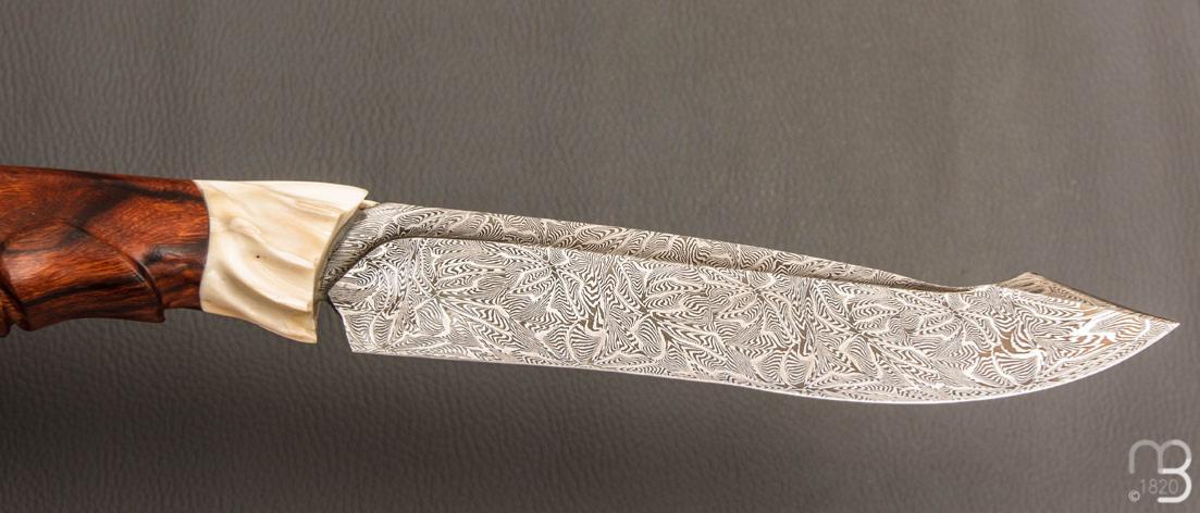 •    Couteau droit par Nicolas Mestrallet - Atelier du couteau de Vaunaveys - Lame forgée acier damas mosaïque et loupe de bois de fer