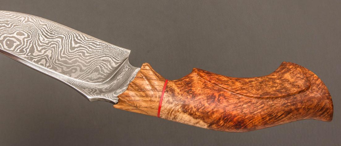 Couteau droit par Nicolas Mestrallet - Atelier du couteau de Vaunaveys - Lame forgée acier damas et loupe d'amboine