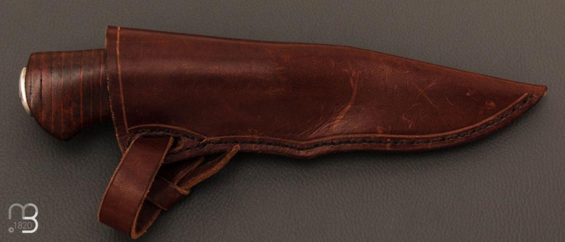 Un couteau fixe semi intégral de Grégory Picard, avec un superbe manche en rondelles de cuir.