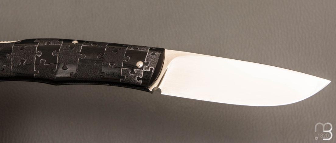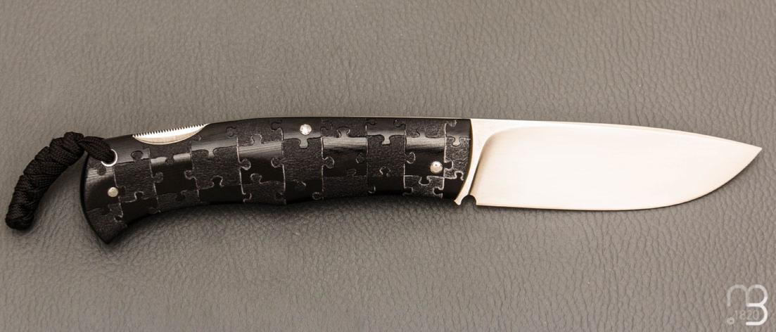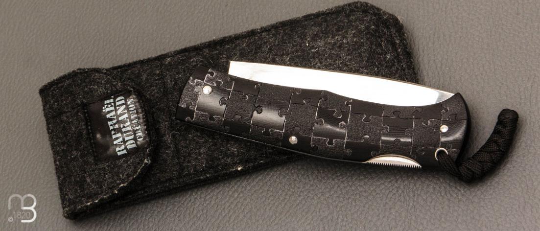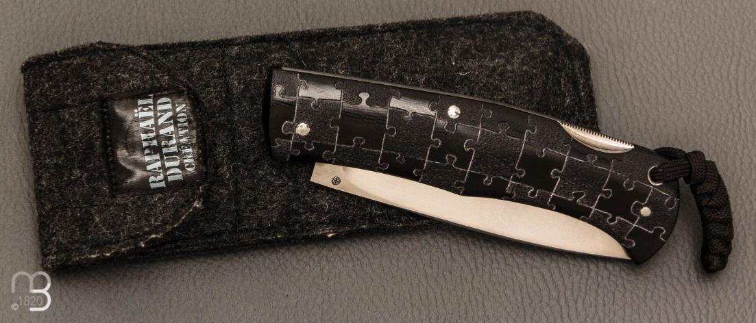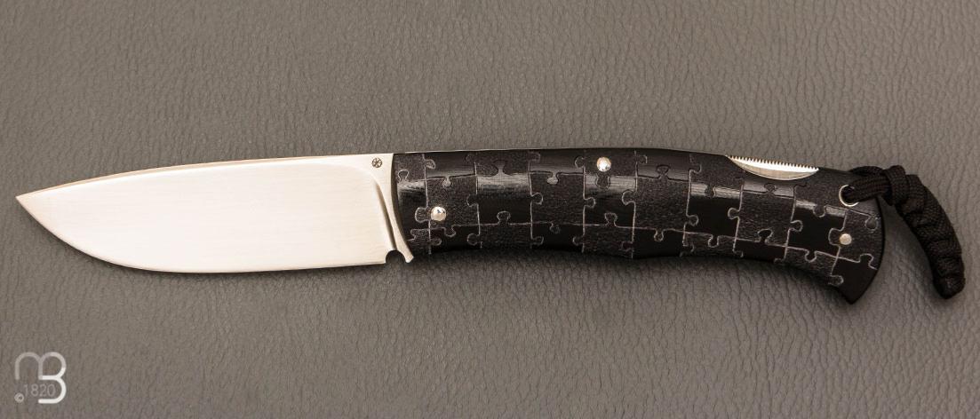 Couteau de collection pliant de poche, fait main par Raphaël Durand, il s'agit d'un modèle sans platines