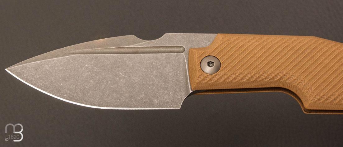 • Couteau " Elementak " de GTKnives - Thomas Gony - G10 tan et RWL-34 stonewash