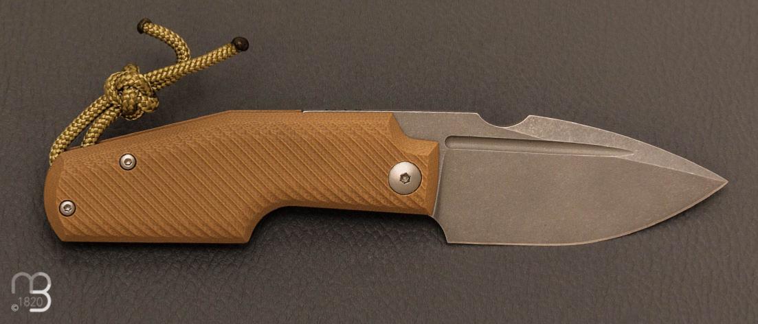 Couteau piémontais tactique "Elementak Friction G10 Tan" par le coutelier Français Thomas Gony (GTKnives)