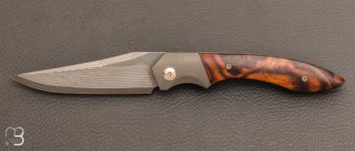 Couteau "  Epervier " custom en Bois de fer et Damas Suminagashi par Nicolas Kowal