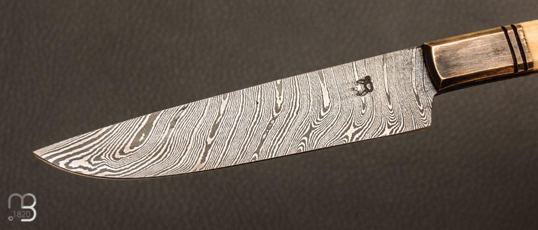 Couteau "Facettes" droit forgé lame damas et os par Pierre Henri Monnet