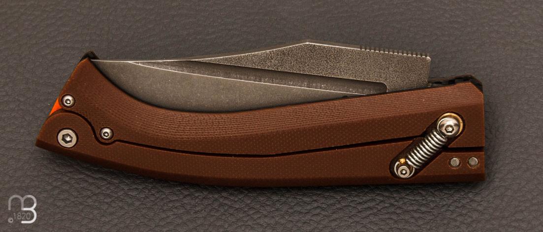 Couteau de poche custom " Folding bowie " en micarta par Torpen Knives - Jérôme Hovaere
