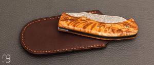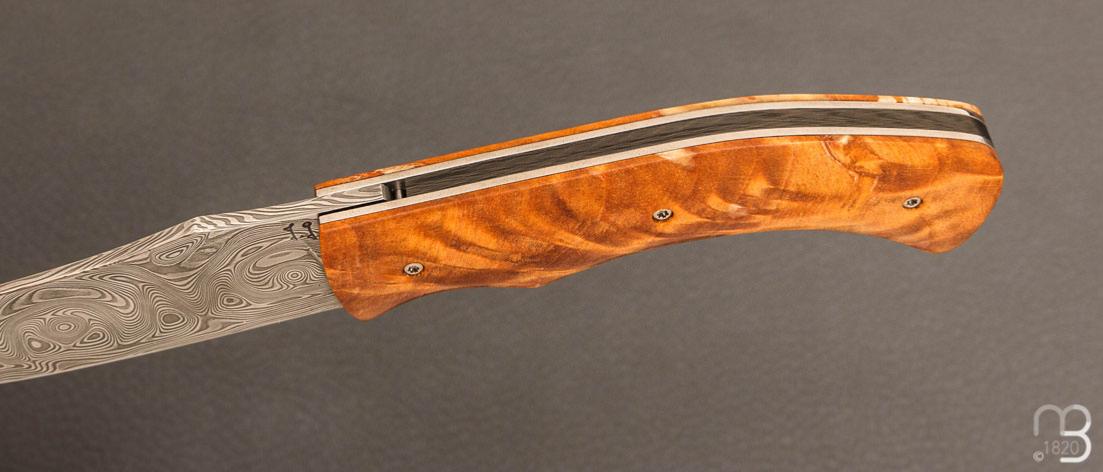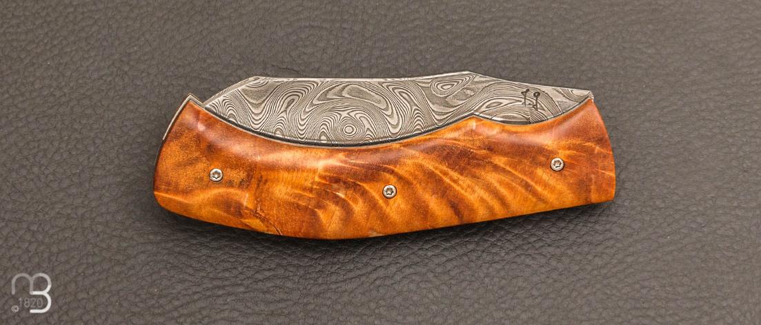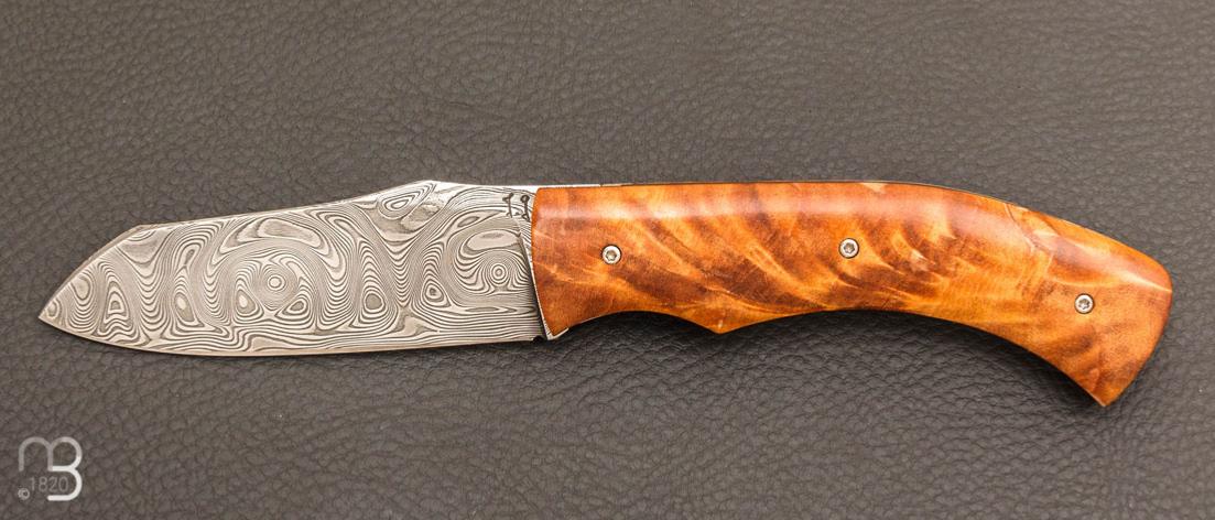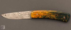 Couteau " Front-flipper " custom peuplier stabilisé et lame damas par Joël Grandjean