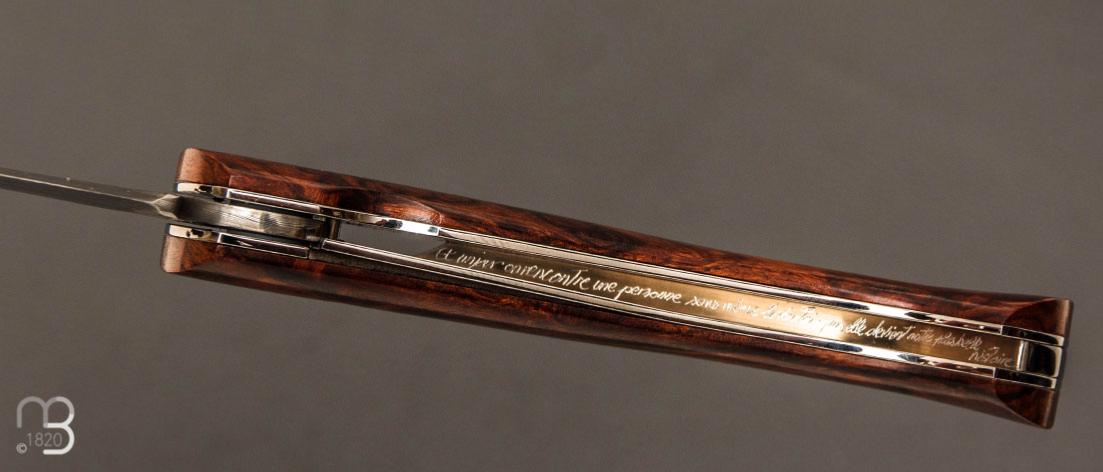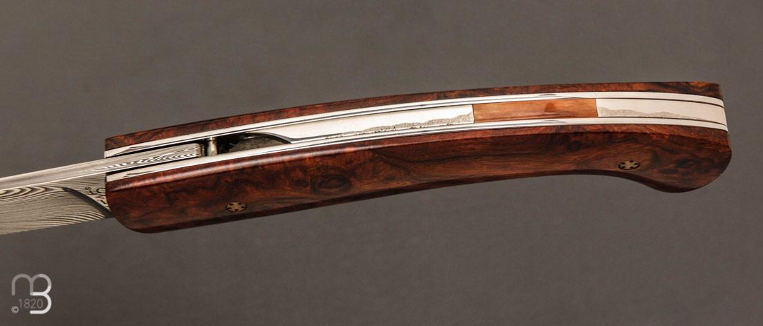 Couteau "Globetrotter" custom par Manu Laplace - Atelier 1515 - Bois de fer et Damas