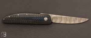 • Couteau " HBP80 " de poche custom fibre de carbone et Damasteel par Des Horn