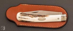 Couteau " Jacknife " custom par Mathieu Herrero - bois de cerf et lame en 14c28