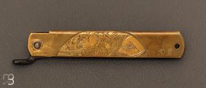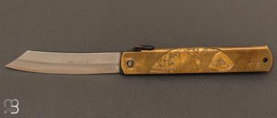 Couteau japonais Higonokami Motosuke Nagao gravé par Mali Irie.