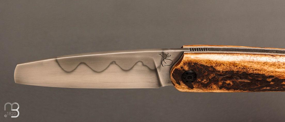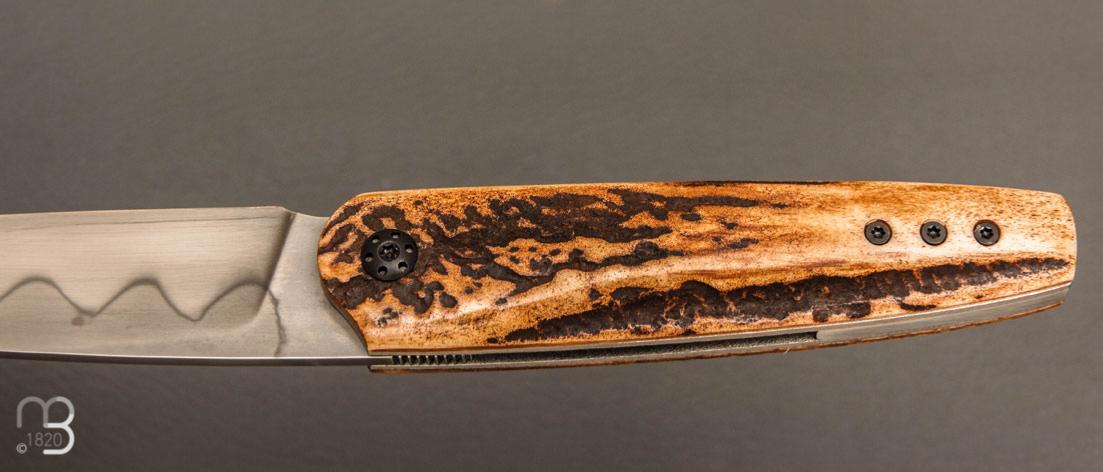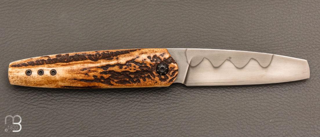 • Couteau " Kashmir " custom de Michel Grini - Bois de cerf et lame en 26c3