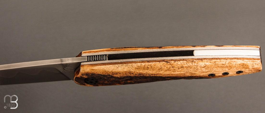Couteau " Kashmir " custom de Michel Grini - Bois de cerf et lame en 26c3