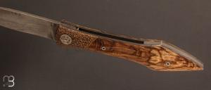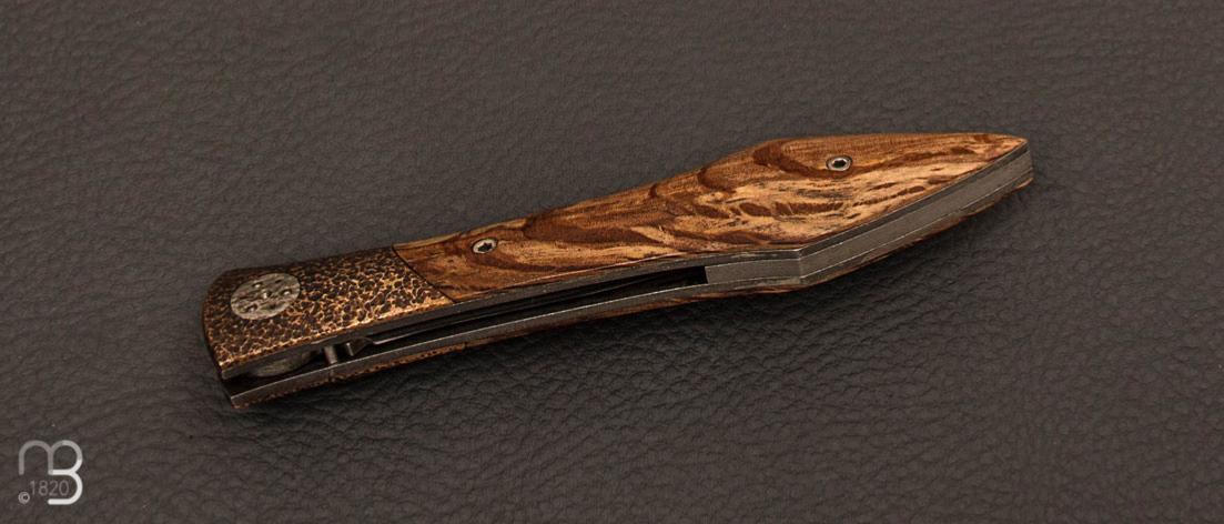Couteau " L'Oegopsyde " fait main par Laraud Blade - Chêne échauffé et lame damas