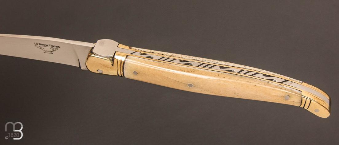Couteau " Laguiole 13 cm " par La Bonne Trempe - Os de girafe et 14c28N