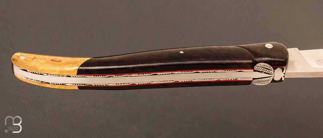 Un couteau Laguiole de collection avec un manche en bois de fer et mokumé