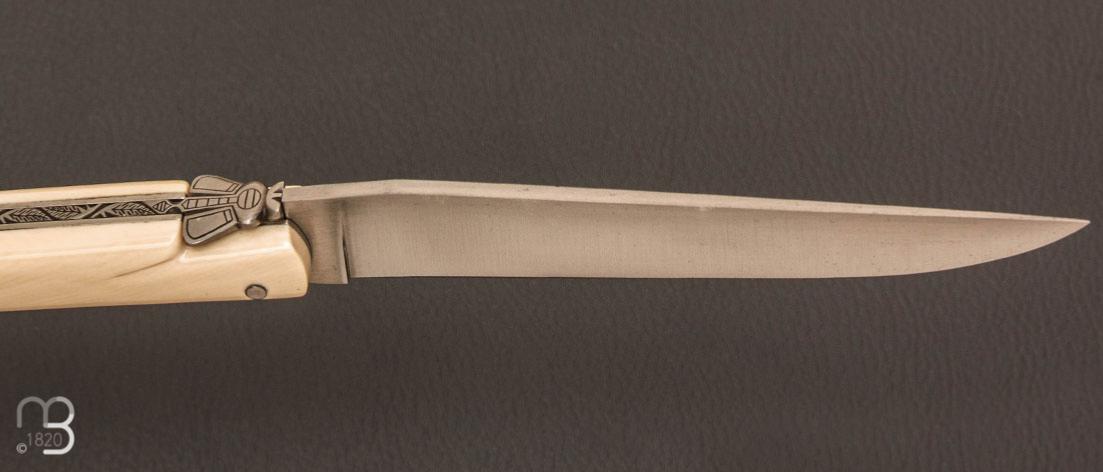 Couteau de poche de collection modèle " Laguiole 2 pièces " avec de jolies plaquettes en ivoire de mammouth