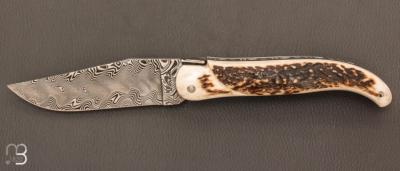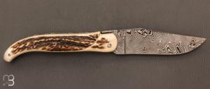 • Couteau " Laguiole Chasse " par Laguiole en Aubrac - Bois de cerf et lame damas